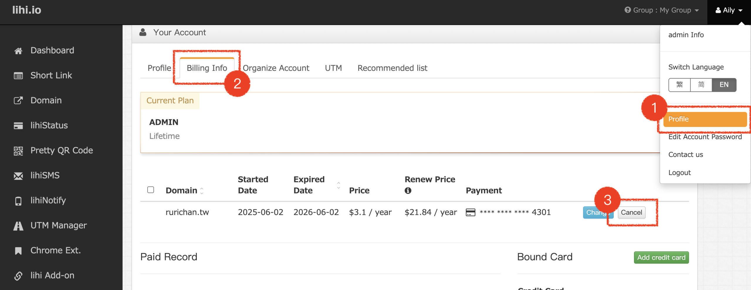 - Initiate Cancellation: From the top-right corner of the main dashboard, click on your Profile icon. Navigate to Payment Info and click the Cancel Subscription button.