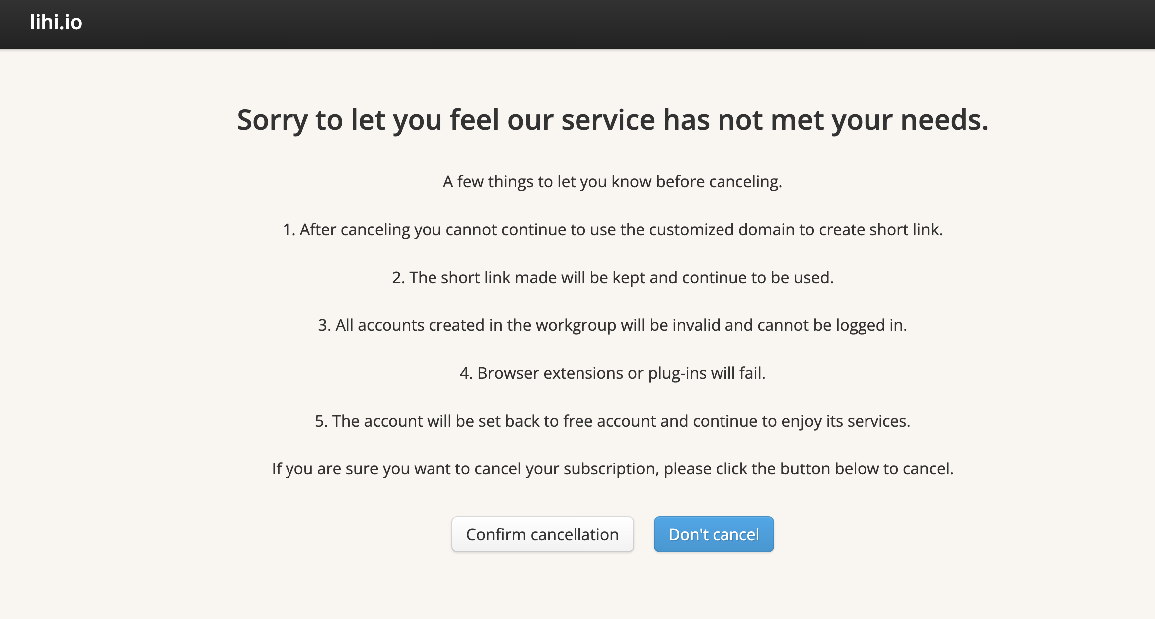 - Review Impact: A reminder screen will appear detailing the features that will be affected after cancellation. After reviewing, click Confirm Cancel to proceed.