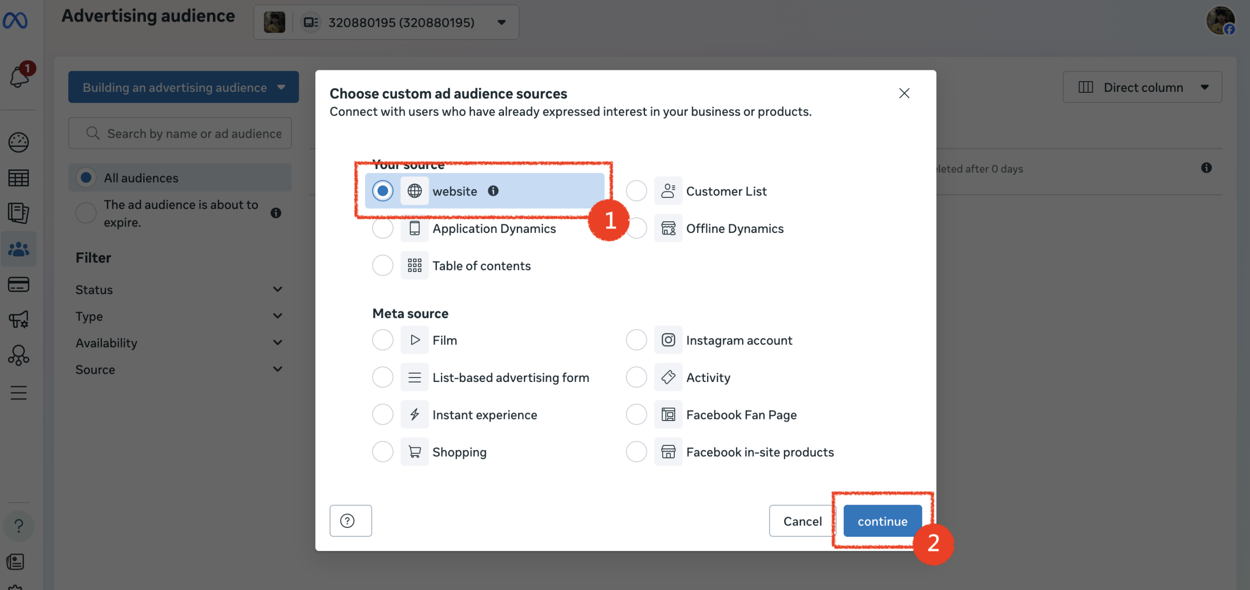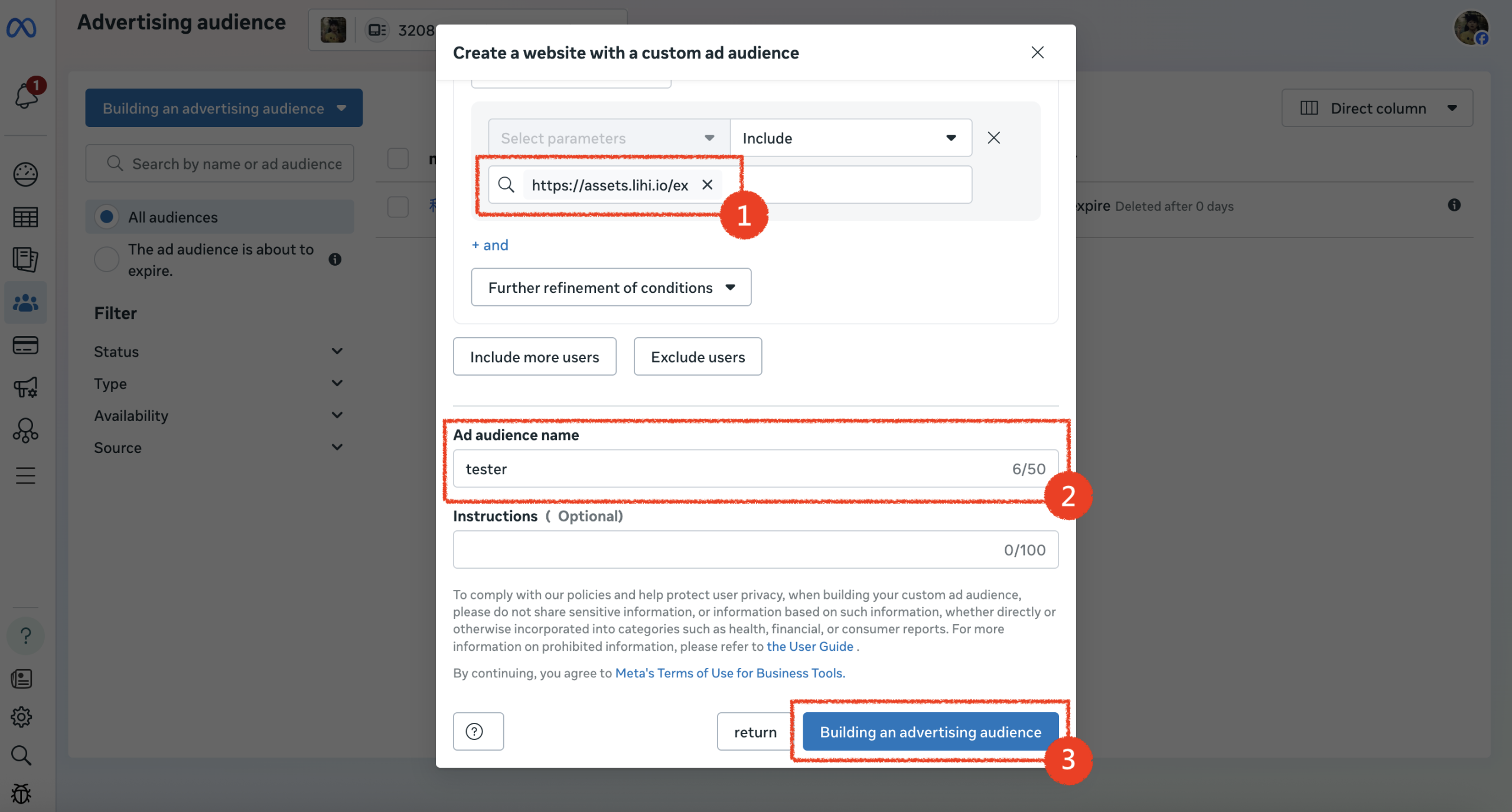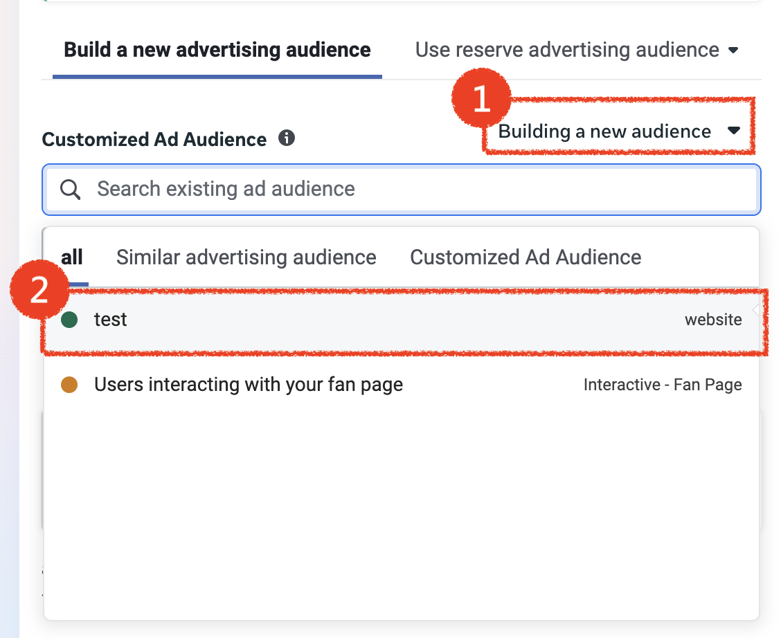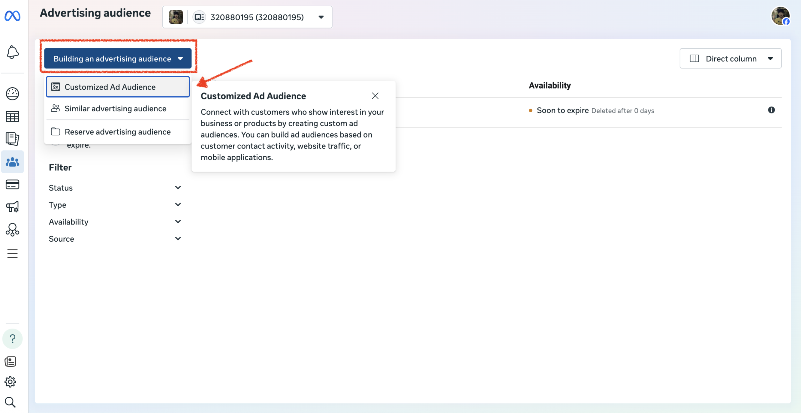 - Start Creation: Click the Create Audience button and select Custom Audience.