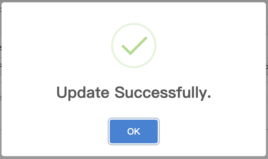 - Confirm Creation: A confirmation popup (“Update Successful”) will appear. Click OK to close it and return to the main dashboard.