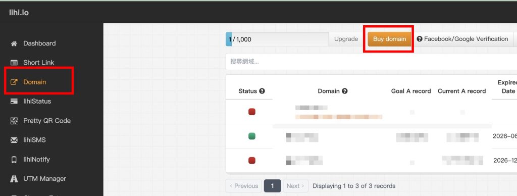 Follow these steps to buy a branded domain directly through the lihi dashboard.