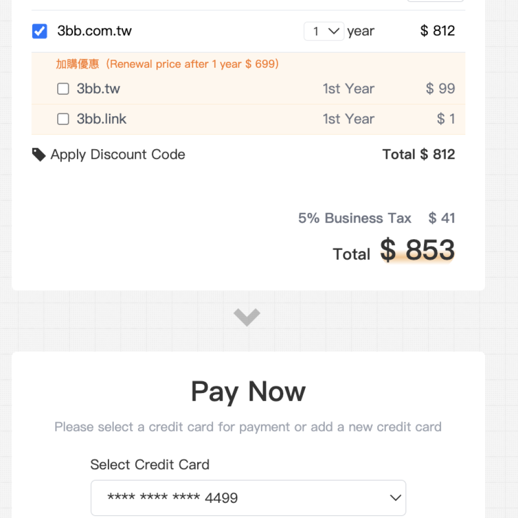 - Select Term: Choose your registration period (default is 1 year, up to a maximum of 5 years).
