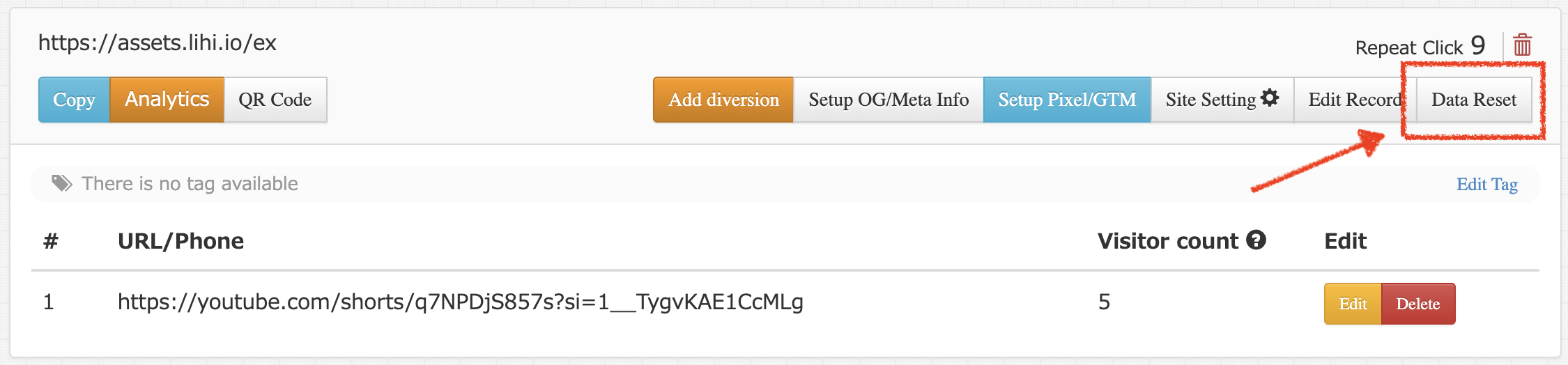 - Reset Data (Crucial Step): After adding the new URL, return to the dashboard and click the Data Reset button. This ensures traffic is distributed evenly between the old and new links immediately.