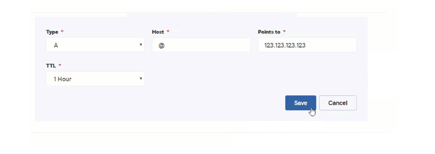 4. Enter the lihi IP address in ‘Points to’ and click Save