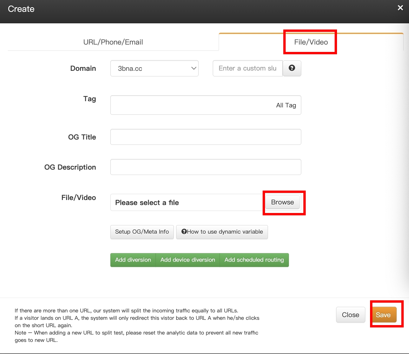 3. Select the “File/Vedio” tab.
