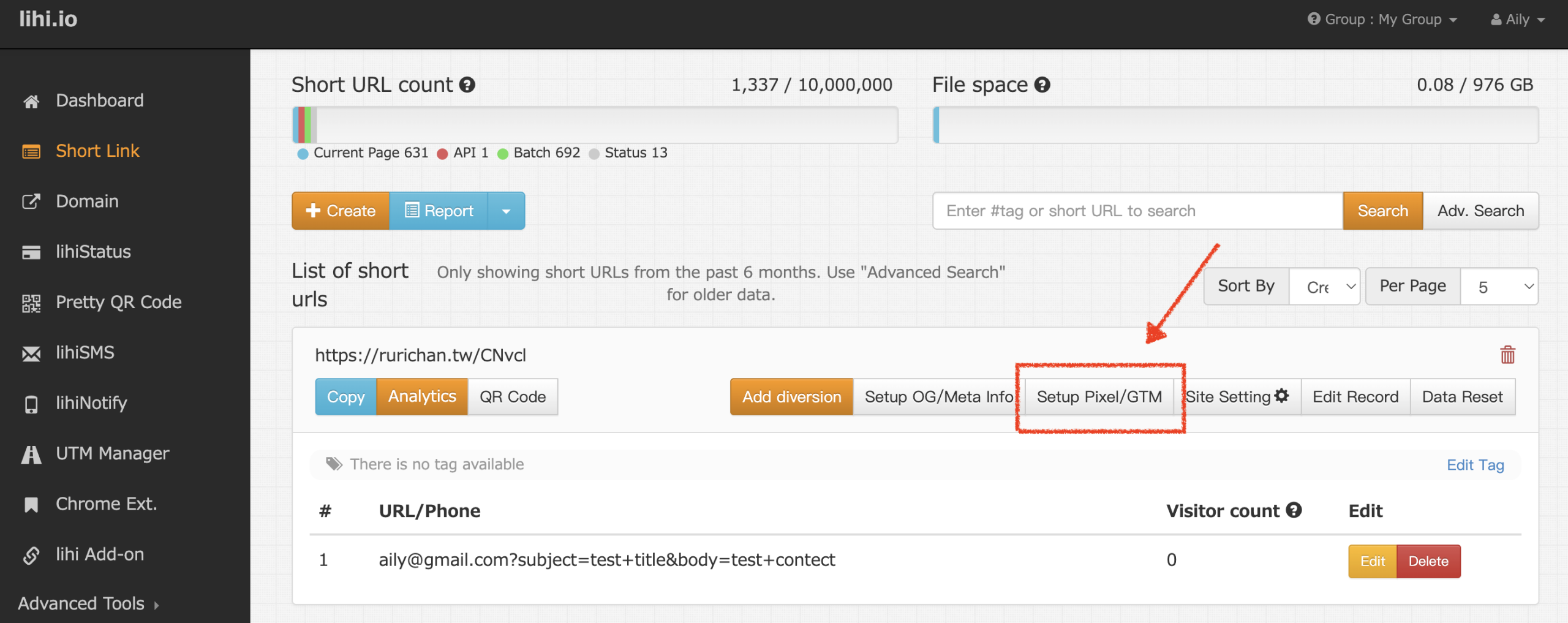 - Navigate to Settings: In your Lihi dashboard, click on Setup Pixel / GTM.