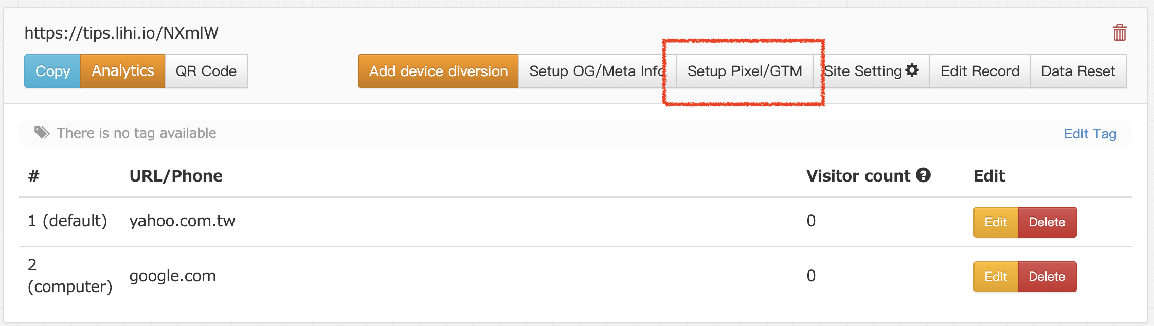 - Access Settings: From the main dashboard, click on the Setup Pixel / GTM button.