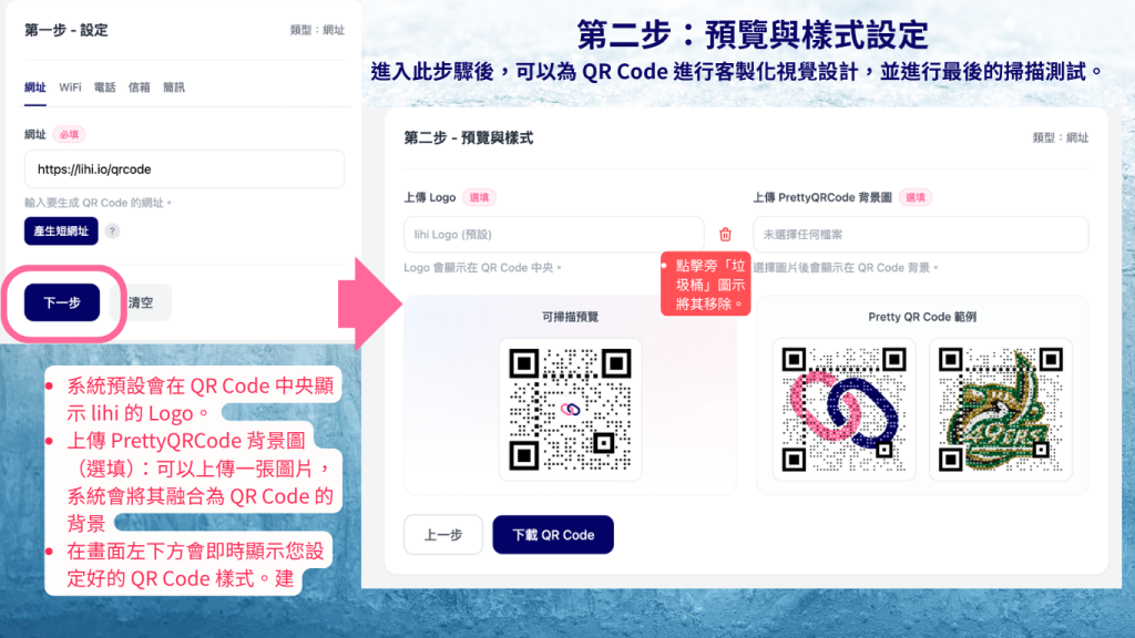 使用 lihi QR Code 產生器,整個製作流程直覺且全中文介面,即使是第一次使用也能快速上手。