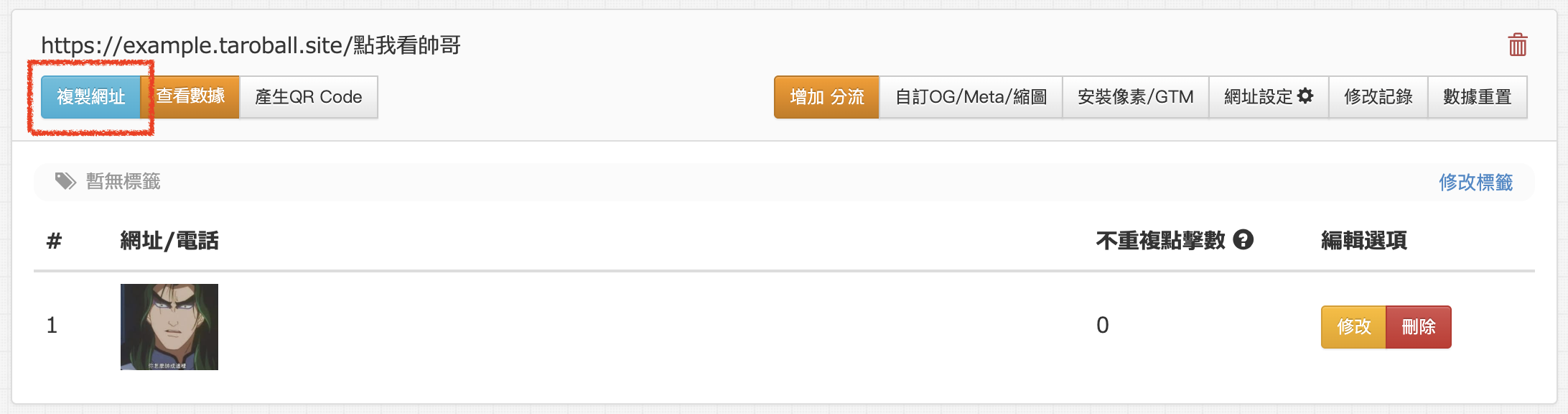 3、可看見主畫面出現剛剛創建的短網址,點選複製網址即可使用。